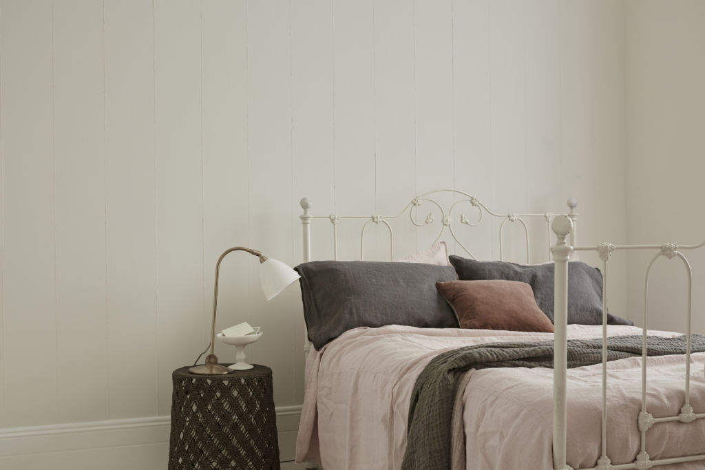 Sometimes only white will do. Earthborn White is different to other paints; it is fresh, clean and free from that harsh blue tone associated with many white paints. In this simple bedroom, white painted wood panelling creates a calm backdrop to inviting bed linens.