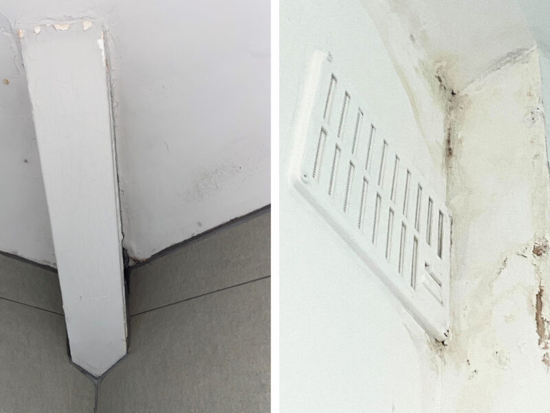Another telltale sign is bubbling or peeling paint. This tends to arise in older properties when non-breathable materials like vinyl paints or modern plasters are used, obstructing the natural airflow of the building and trapping moisture. Similarly, modern homes can have bubbling or peeling paint and this tends to happen in rooms that are exposed to high levels of moisture such as bathrooms and kitchens.