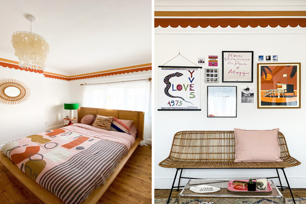 Like Natasha, Emma also lives in a rented home so didn’t want to paint the full walls of her bedroom. So to add interest to her white walls (and to tie in her overall colour scheme) she created a scalloped border along the top of her walls using Freckle & Flower Pot. This type of project doesn’t require much paint but makes a huge impact. Fancy trying it for yourself? You can see her ‘how to’ over on her Instagram stories.
