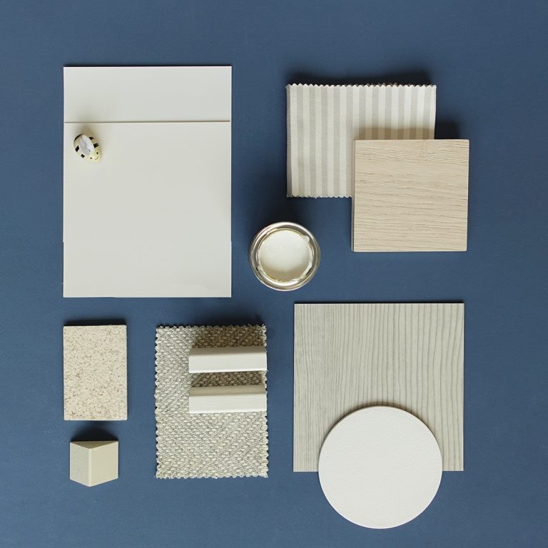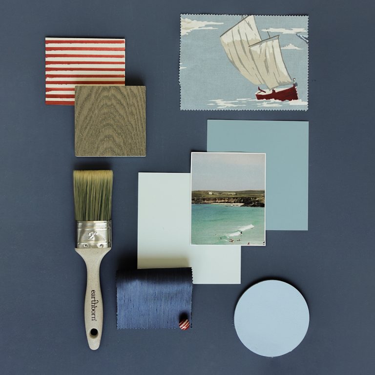 St John, has subtle grey undertones, which enhances the deep blue of Balloon Ride, creating a fresh and airy ambiance.