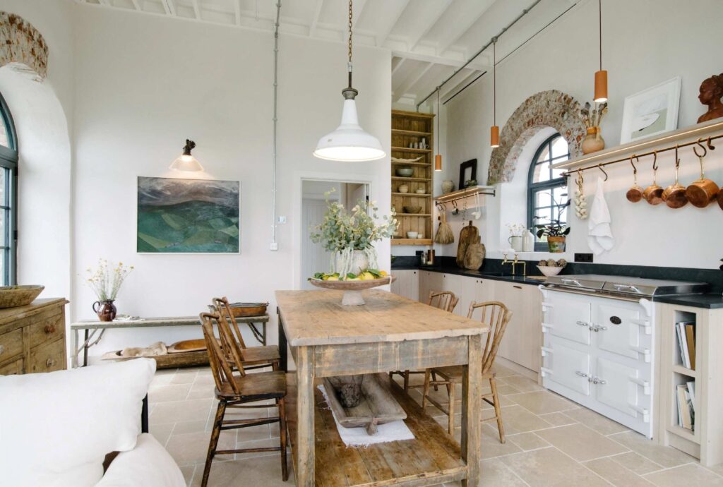 Throughout the property, the couple used Claypaint in our light neutrals hues Feather Pillow and Tom’s Bakery. The tonal scheme perfectly enhances the natural light that pours into the building through its many large windows. In the kitchen, White Clay complements both the natural rustic aesthetic of the decor and exposed brickwork. The colours create a warm and cosy feeling as they’ve chosen shades with warm undertones, while maintaining a light and airy feel.